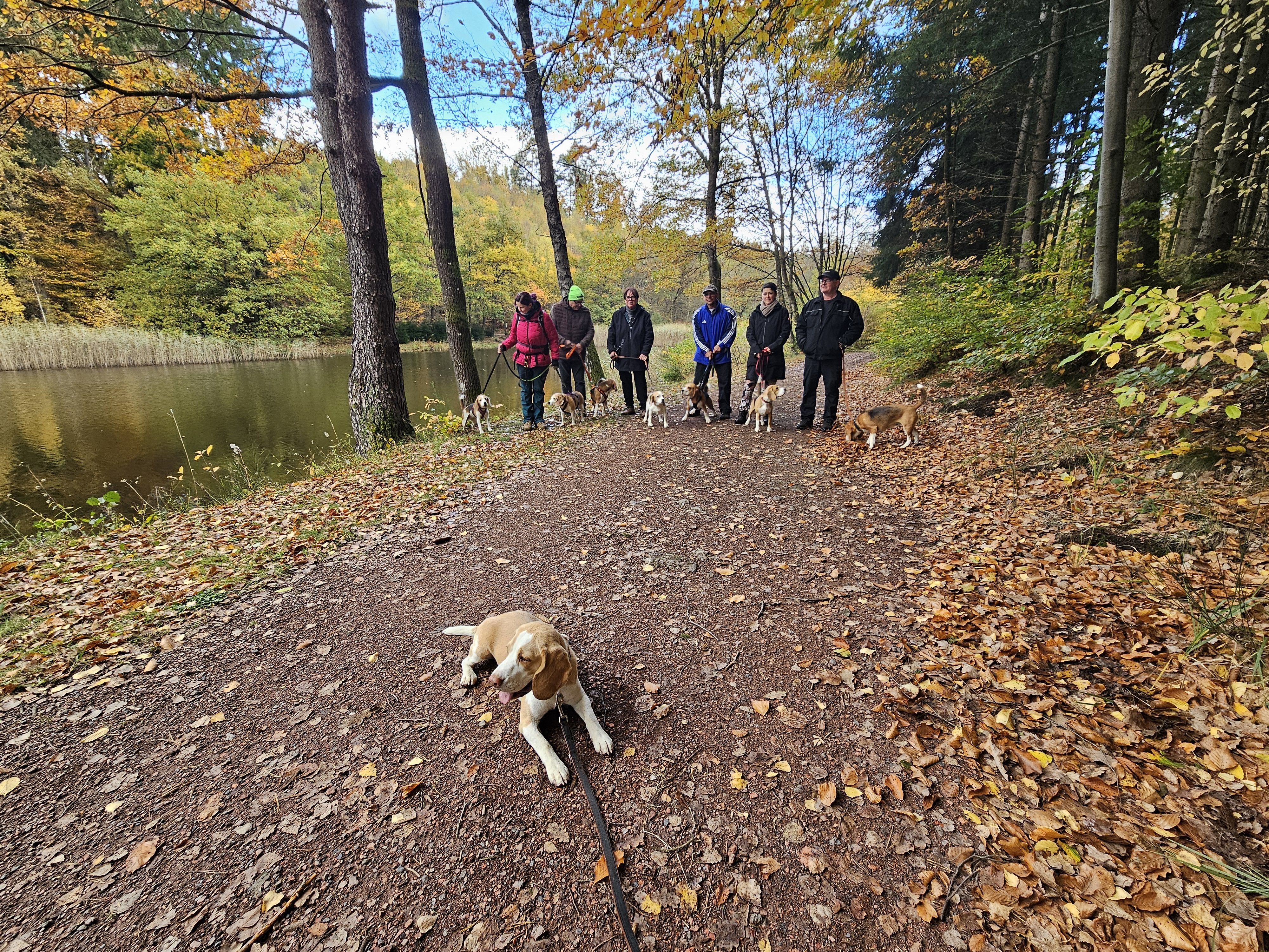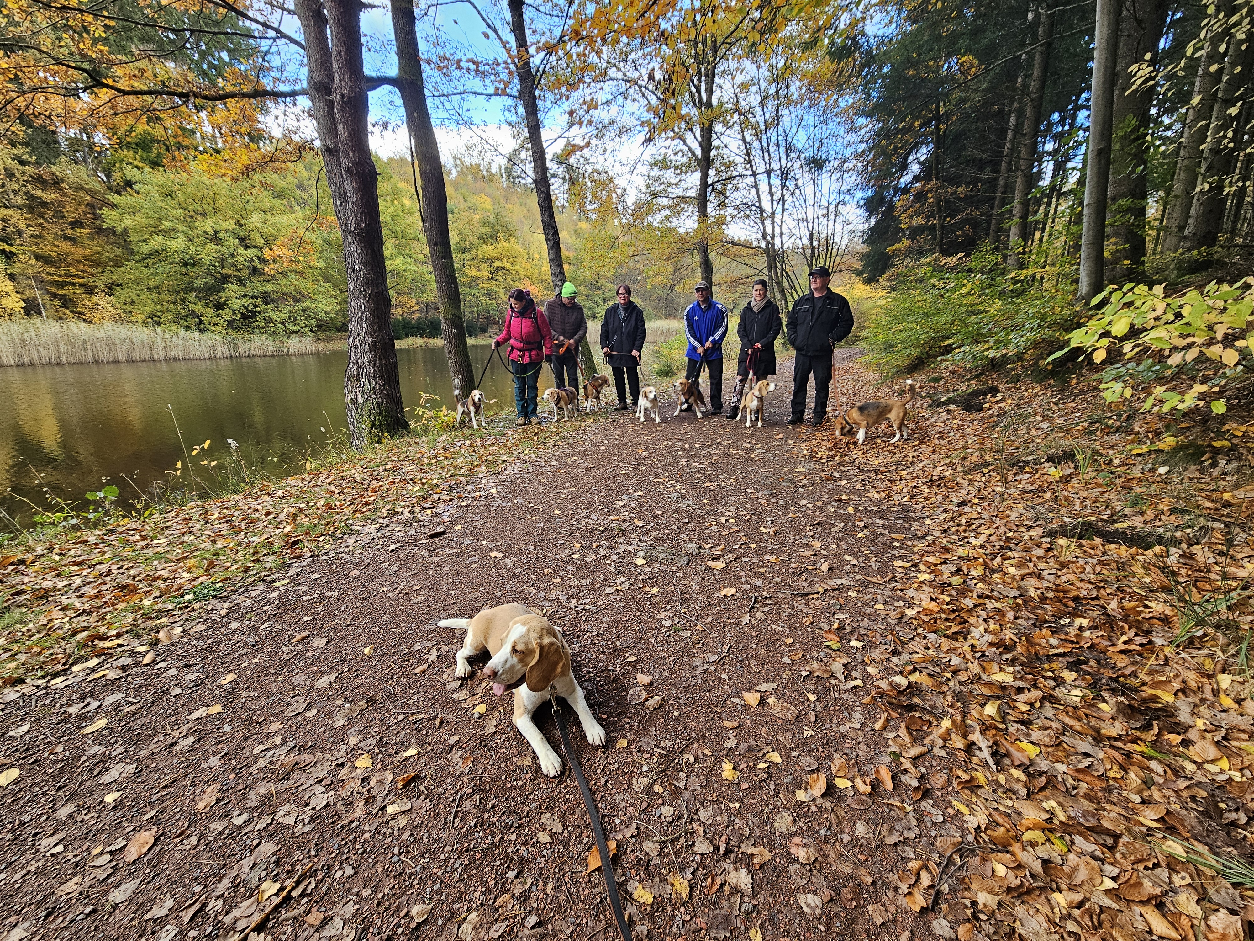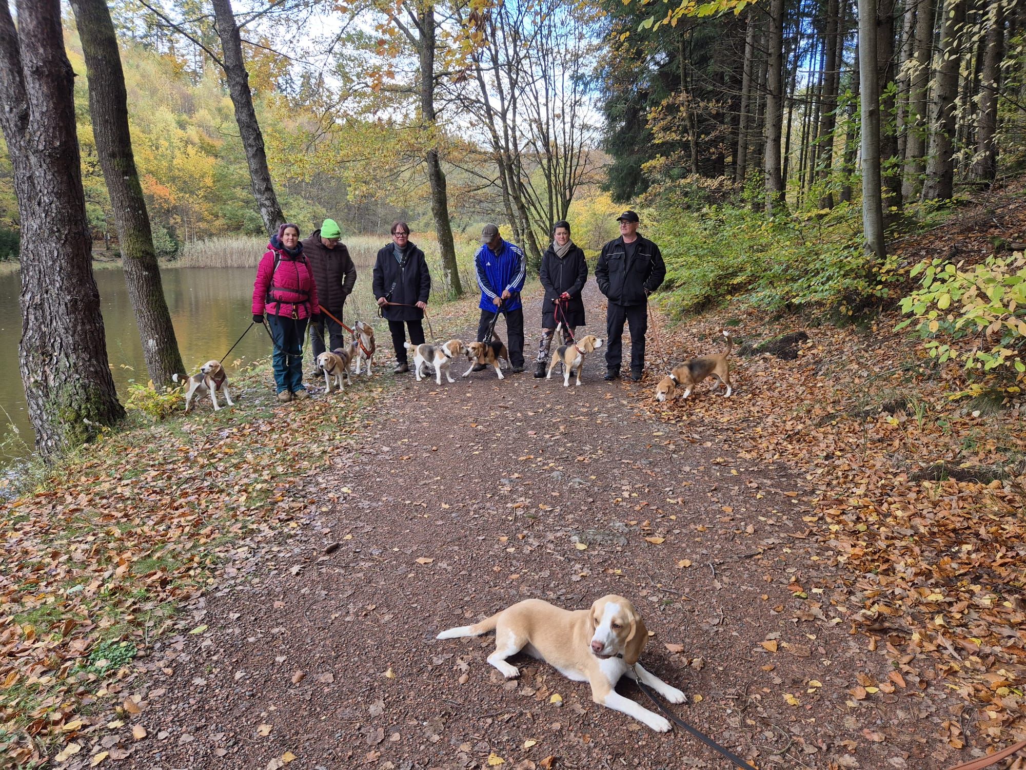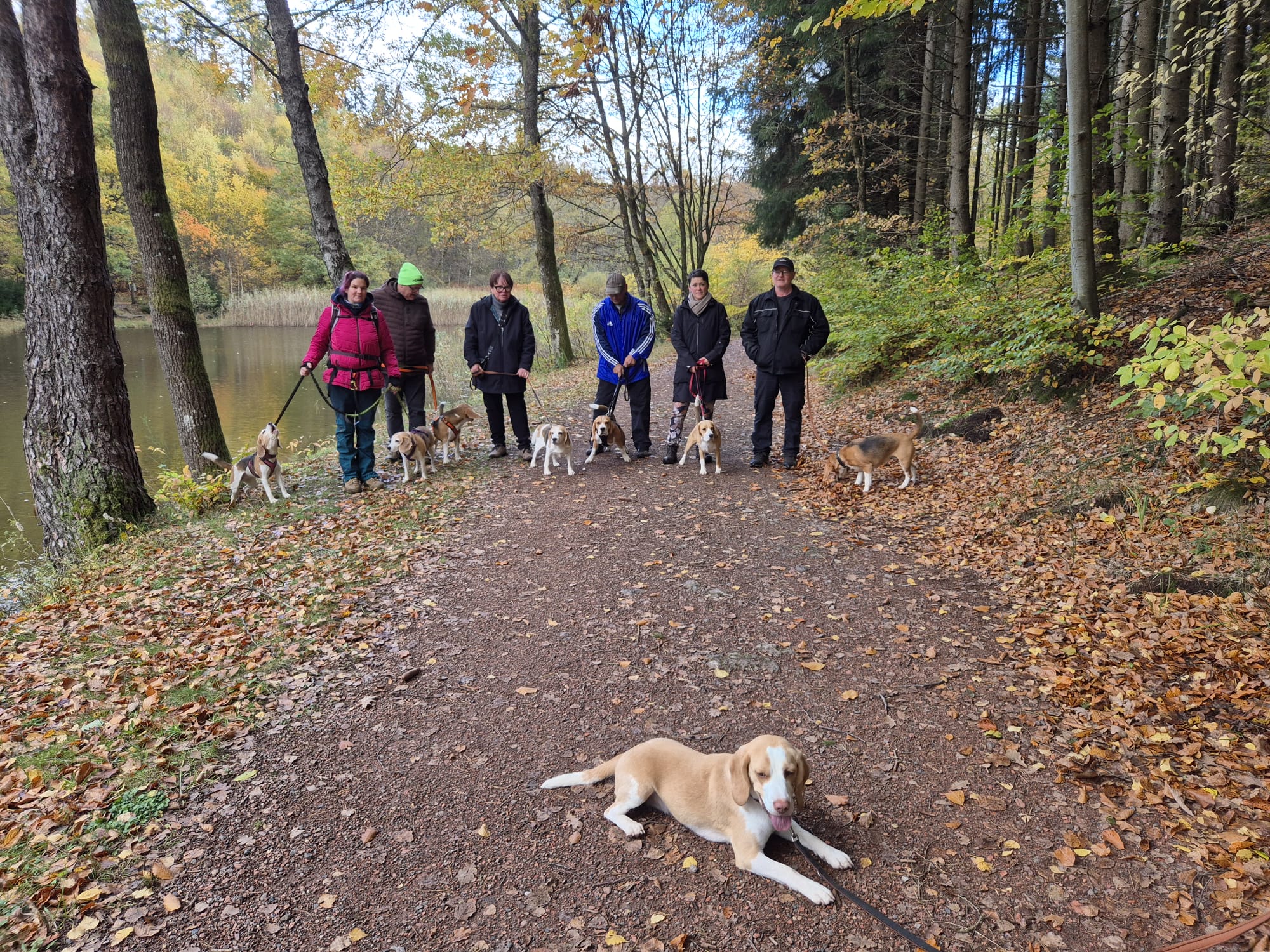 Am Sonntag, 26.10.25 trafen sich acht begeisterte Beagle-Besitzer samt ihren 8 vierbeinigen Lieblingen zur gemeinsamen Wanderung einer 3 Weiher Tour – ein echtes Highlight für Mensch und Hund! Ausgangspunkt war die Fischerhütte am Griesweiher, wo sich die Gruppe bei bestem Herbstwetter versammelte. Die Sonne ließ sich immer wieder blicken und sorgte für angenehme Temperaturen und gute Laune.