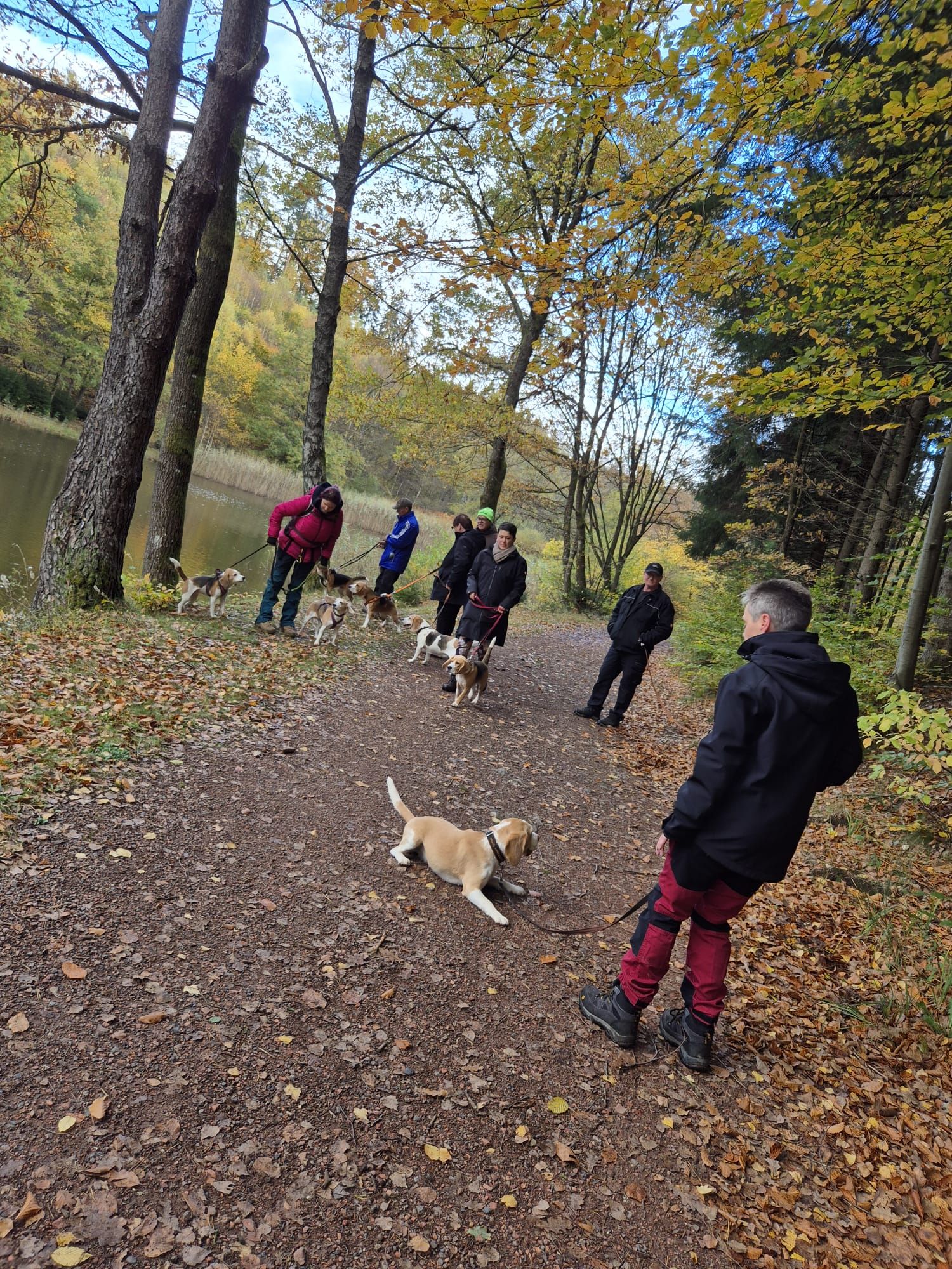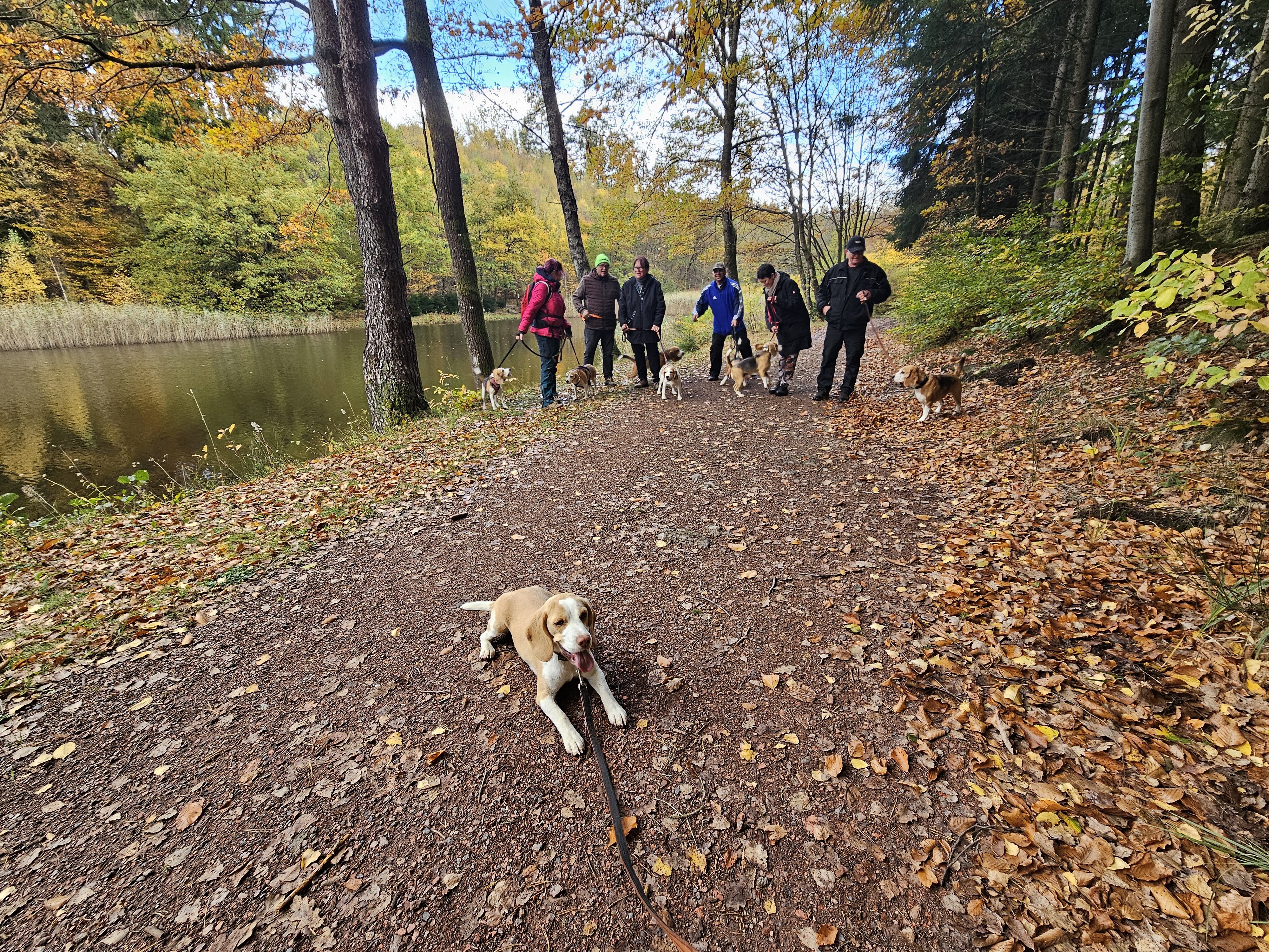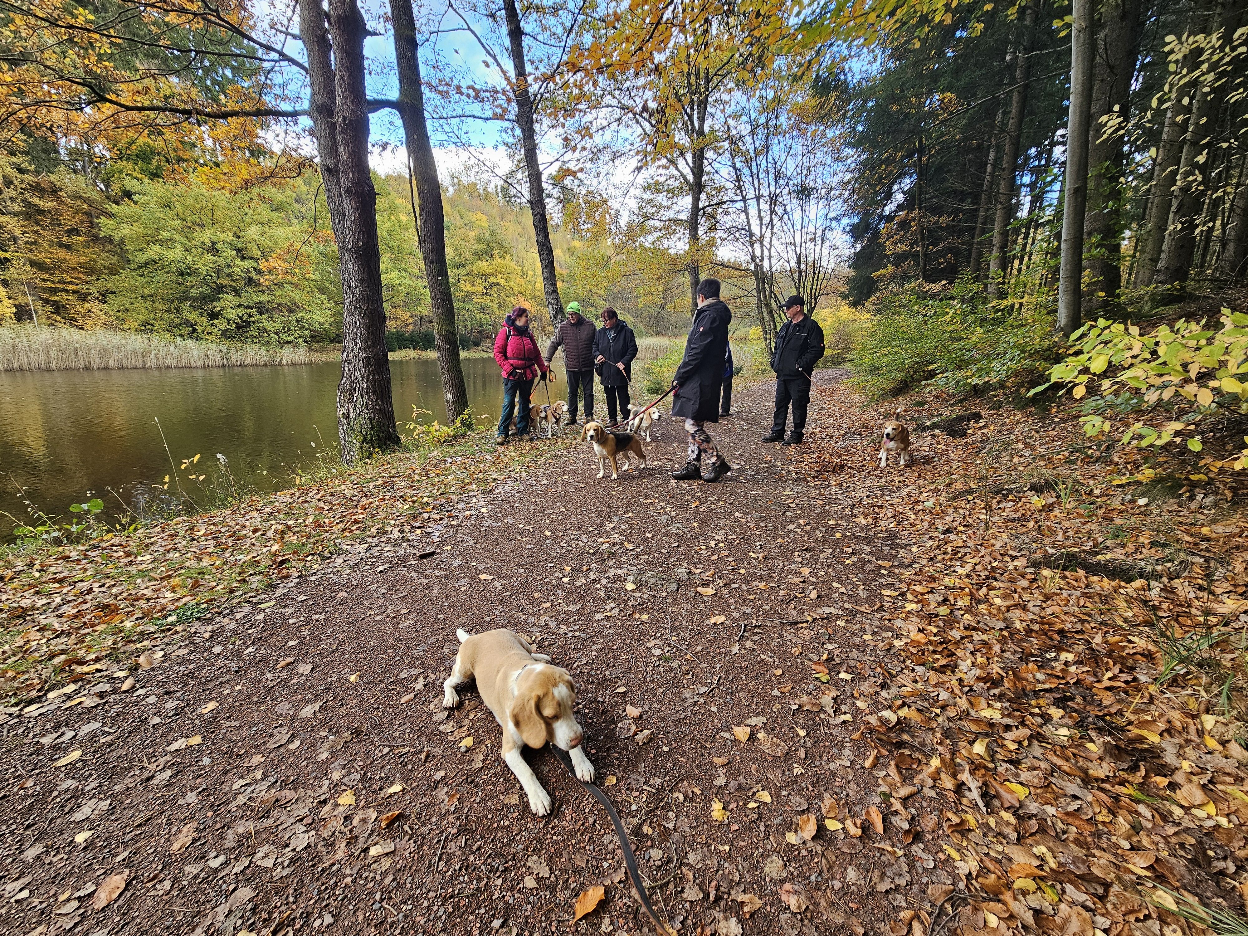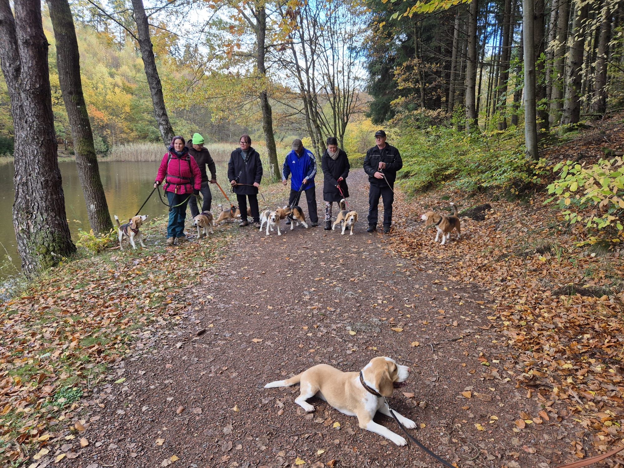 Am Sonntag, 26.10.25 trafen sich acht begeisterte Beagle-Besitzer samt ihren 8 vierbeinigen Lieblingen zur gemeinsamen Wanderung einer 3 Weiher Tour – ein echtes Highlight für Mensch und Hund! Ausgangspunkt war die Fischerhütte am Griesweiher, wo sich die Gruppe bei bestem Herbstwetter versammelte. Die Sonne ließ sich immer wieder blicken und sorgte für angenehme Temperaturen und gute Laune.
