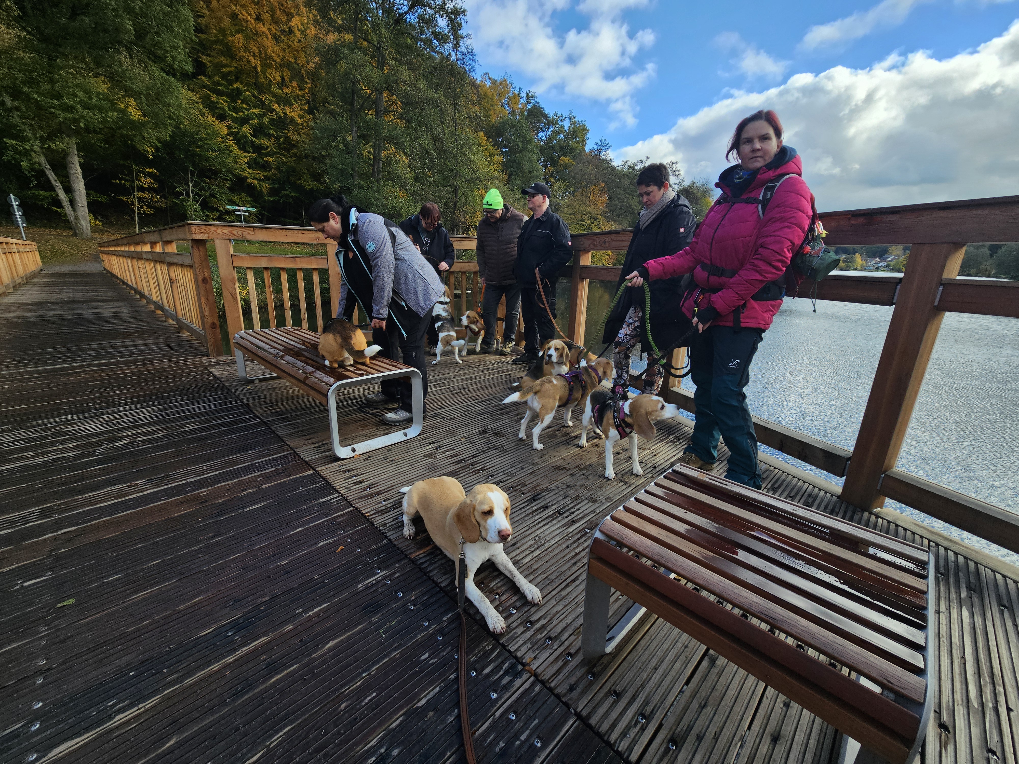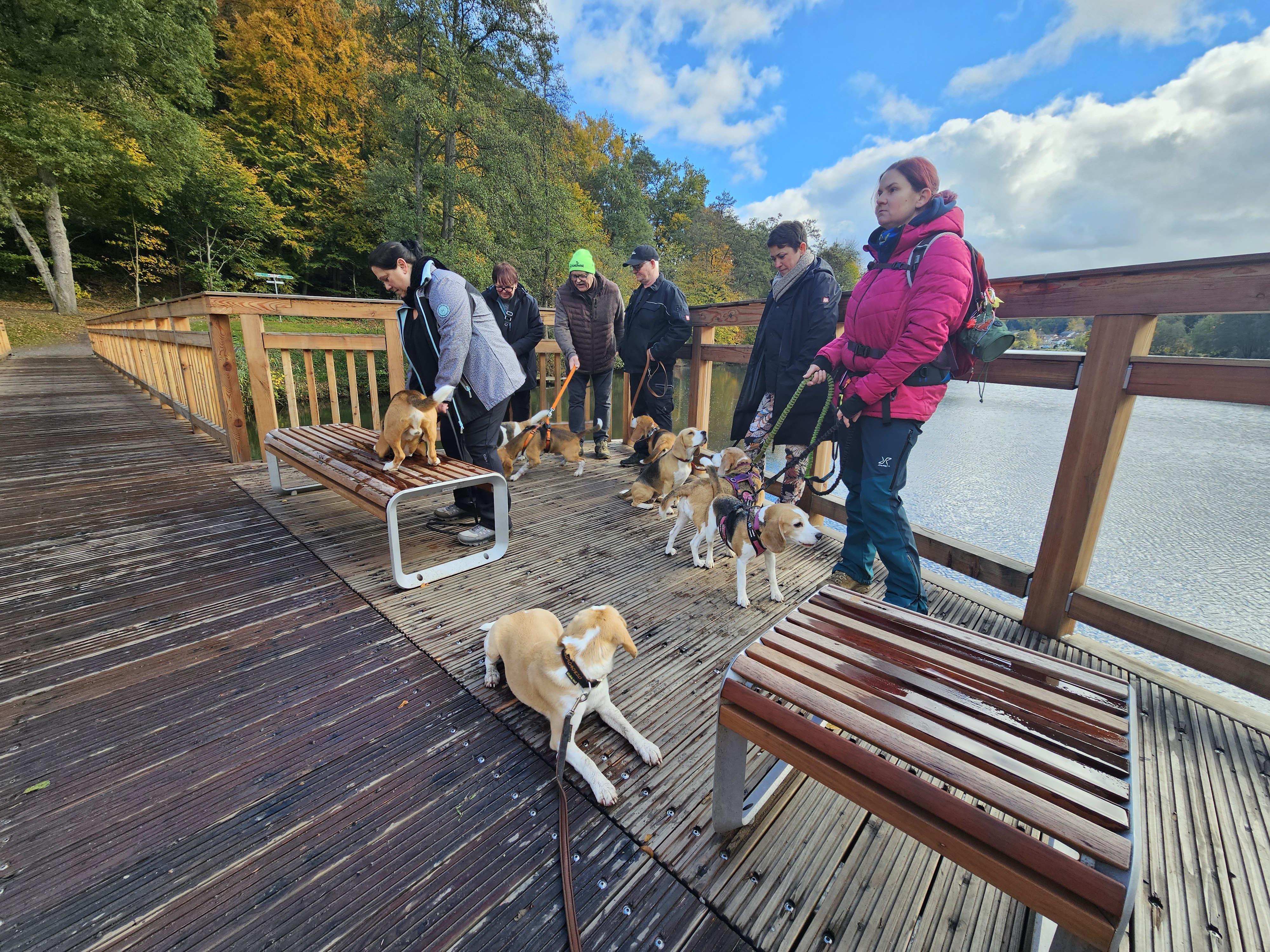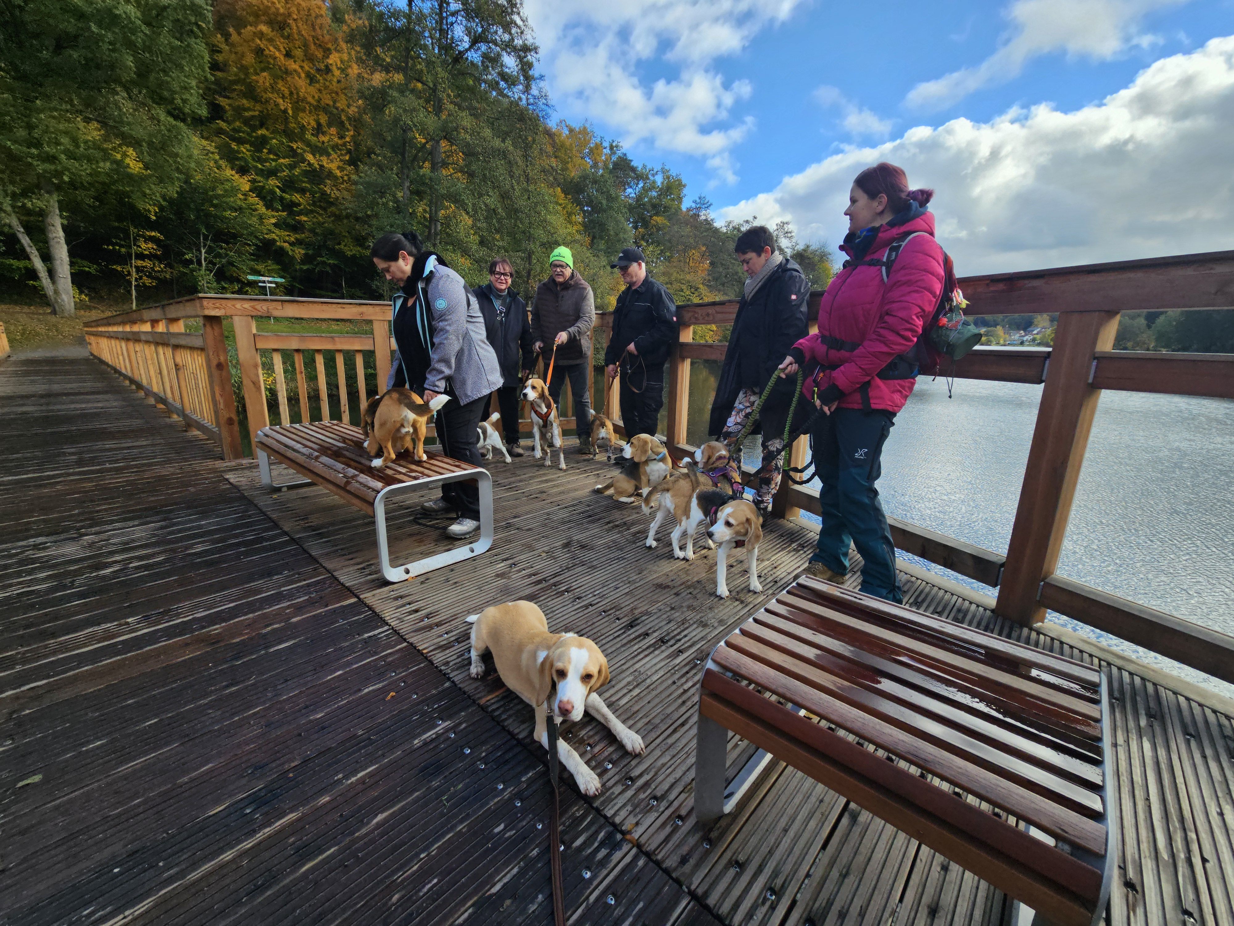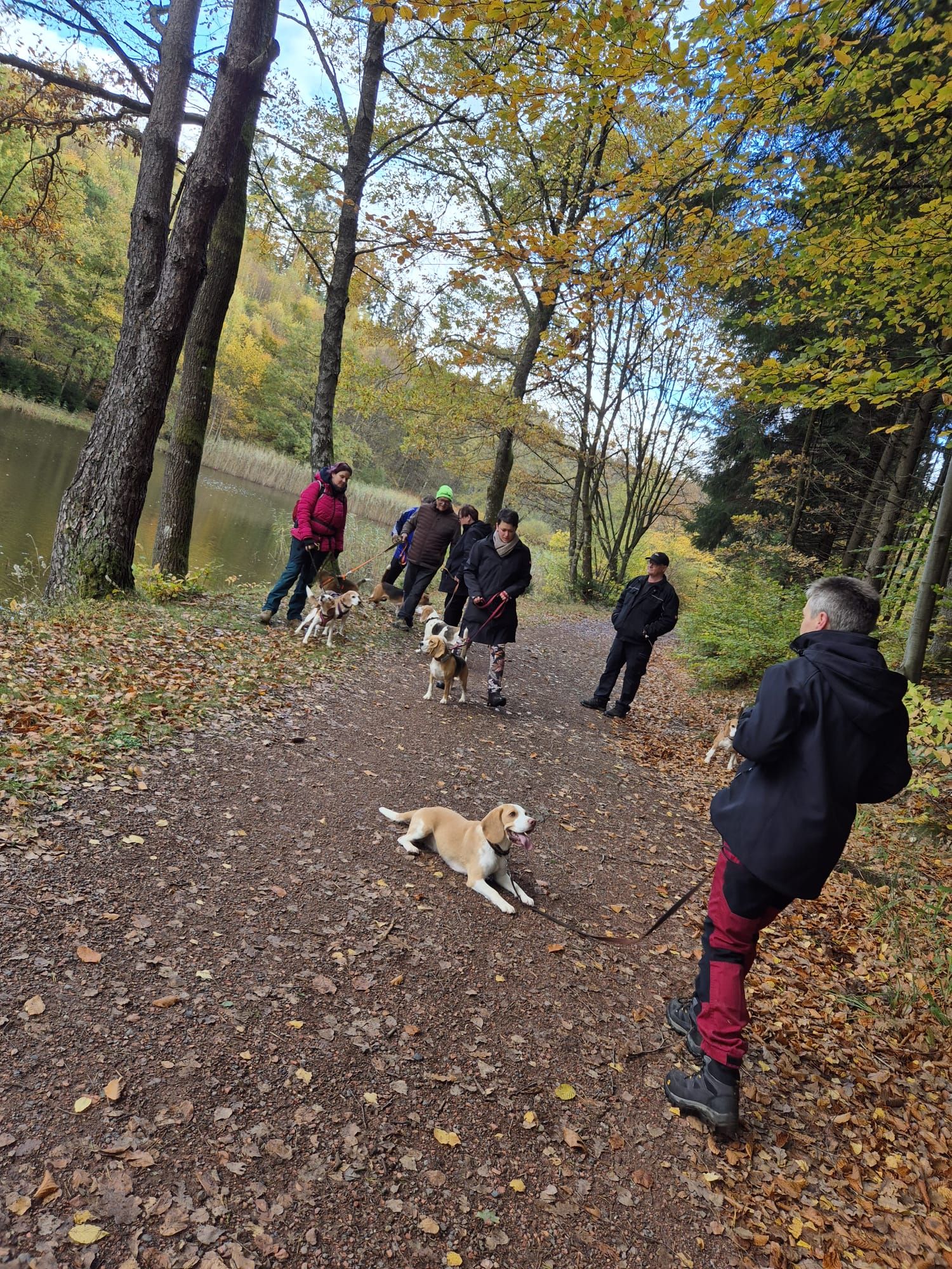 Am Sonntag, 26.10.25 trafen sich acht begeisterte Beagle-Besitzer samt ihren 8 vierbeinigen Lieblingen zur gemeinsamen Wanderung einer 3 Weiher Tour – ein echtes Highlight für Mensch und Hund! Ausgangspunkt war die Fischerhütte am Griesweiher, wo sich die Gruppe bei bestem Herbstwetter versammelte. Die Sonne ließ sich immer wieder blicken und sorgte für angenehme Temperaturen und gute Laune.