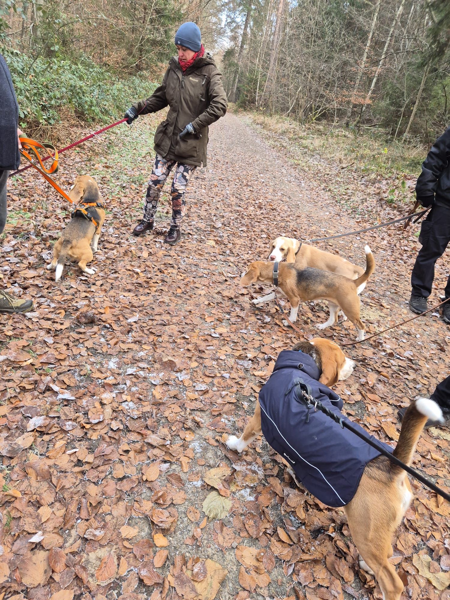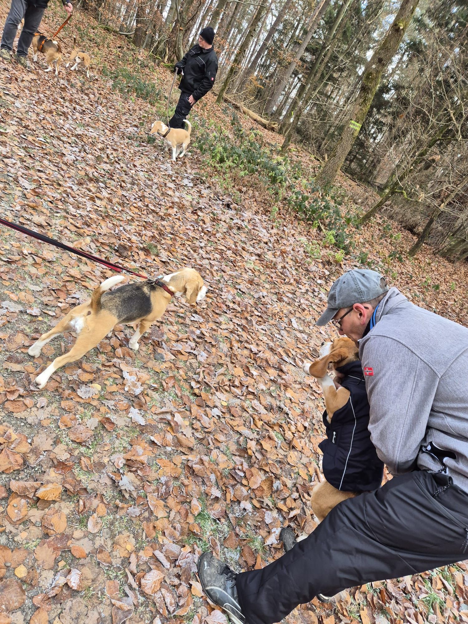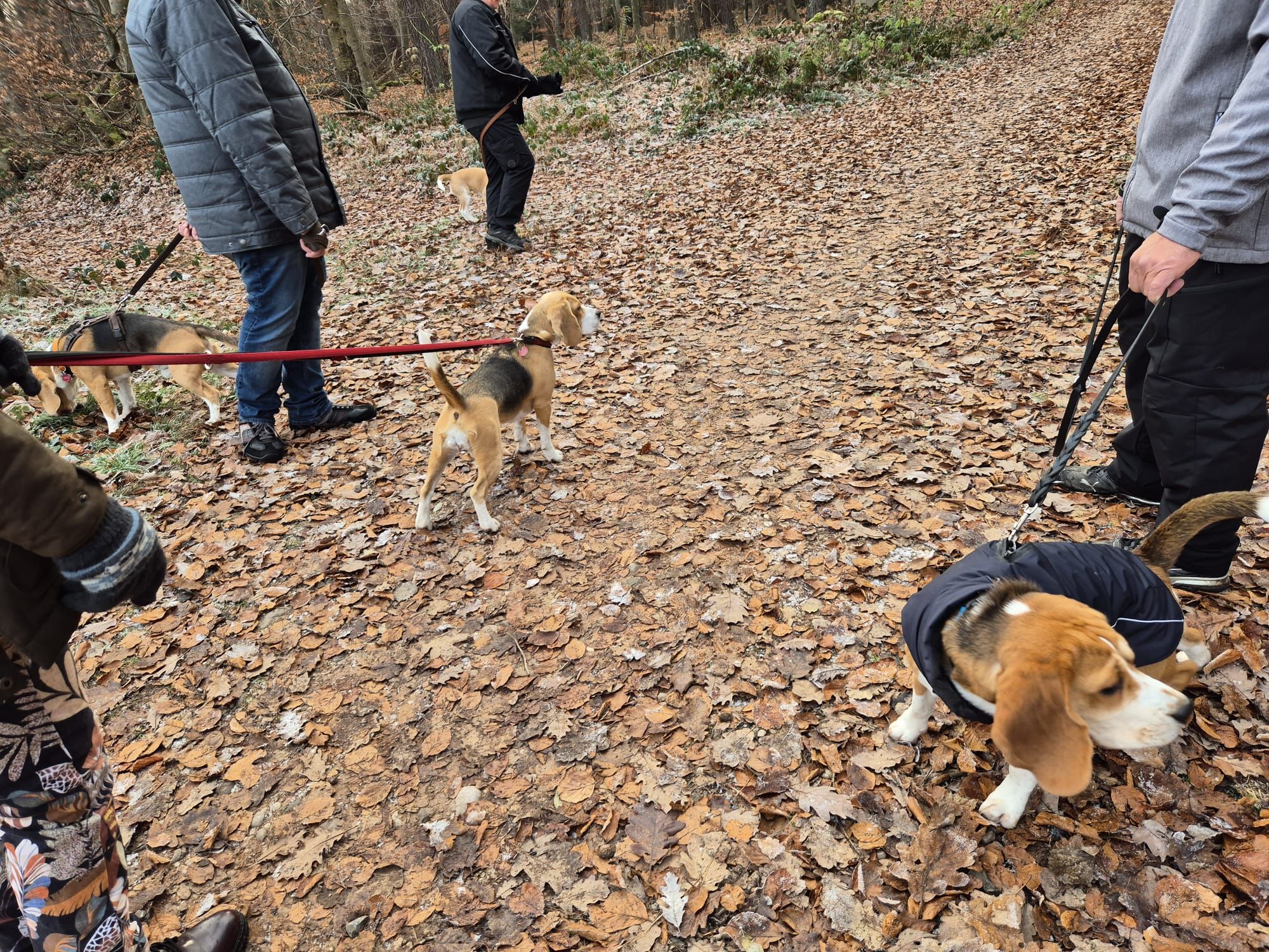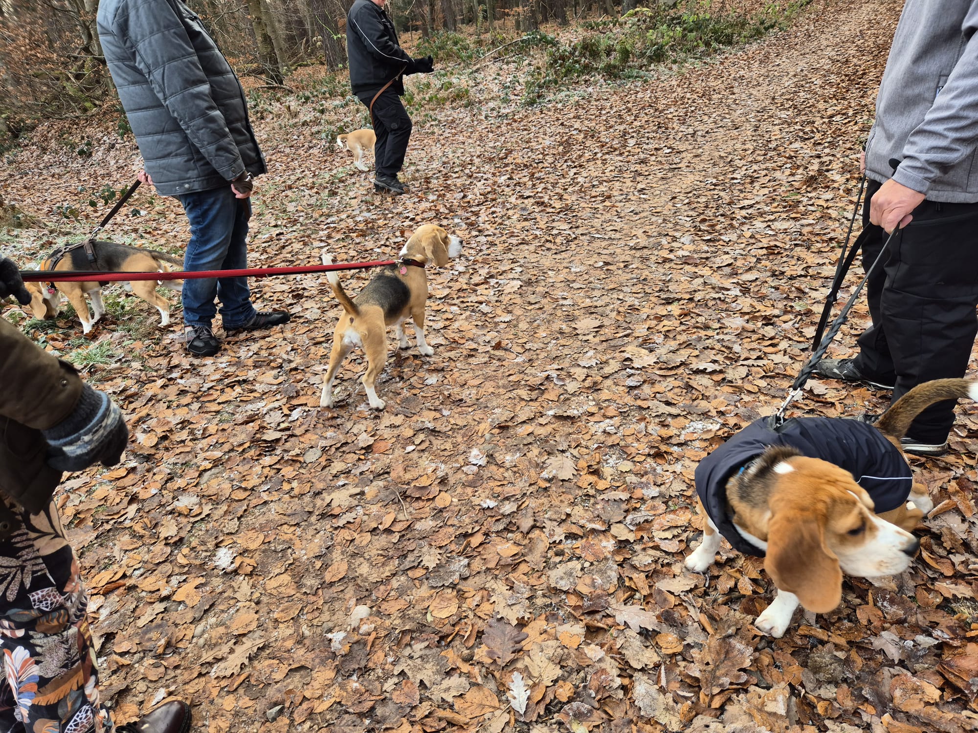 Als wir von dem Spaziergang zurück zum Hundeplatz kamen, wurden auch schon die ersten Fotos von Charlie gemacht. Er war mit seinen Menschen, langjährigen Mitgliedern der LG, auch nicht beim Spaziergang dabei, da er noch recht klein ist. Nach den ersten Fotos war aber dann das Essen fertig und die Fotos mussten warten. Da das Wetter nicht so gut vorhergesagt war, ging es nach dem Essen aber auch gleich wieder auf den Platz zum Fotoshooting. Außer den Einzelfotos wollte Ruth gerne auch Fotos von Beagles in Aktion machen. Das mit den Fotos hat dann auch alles noch gut funktioniert, aber das Wetter wurde immer schlechter und da Glatteis vorhergesagt wurde, haben wir den Kuchen zum gemütlichen Kaffee aufgeteilt und unseren Mitgliedern mitgegeben.