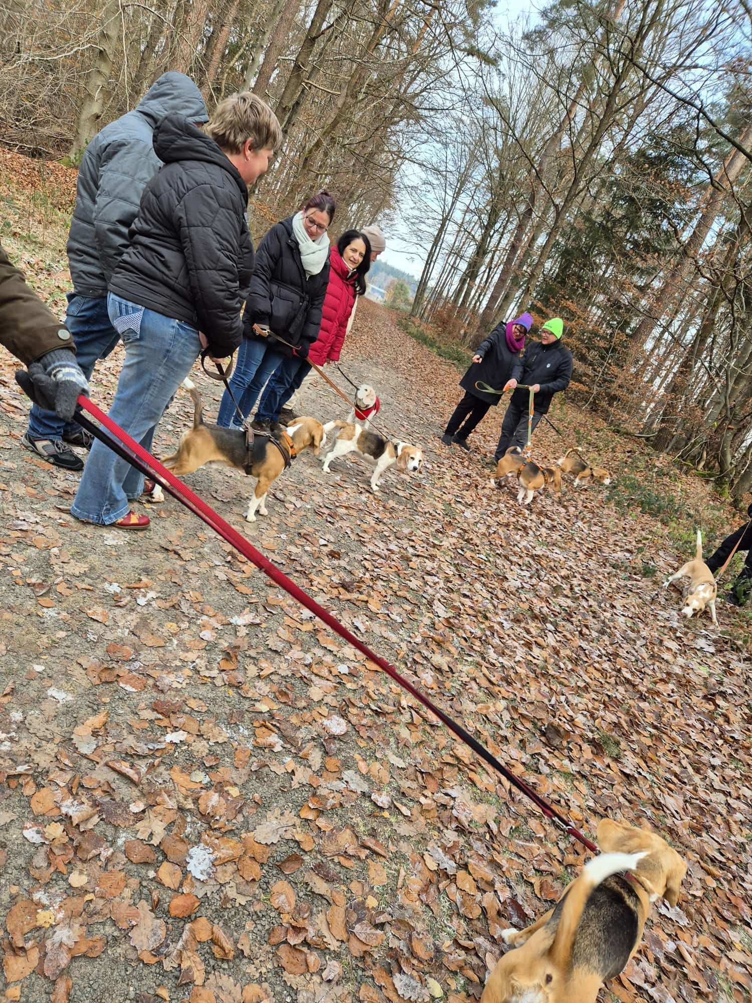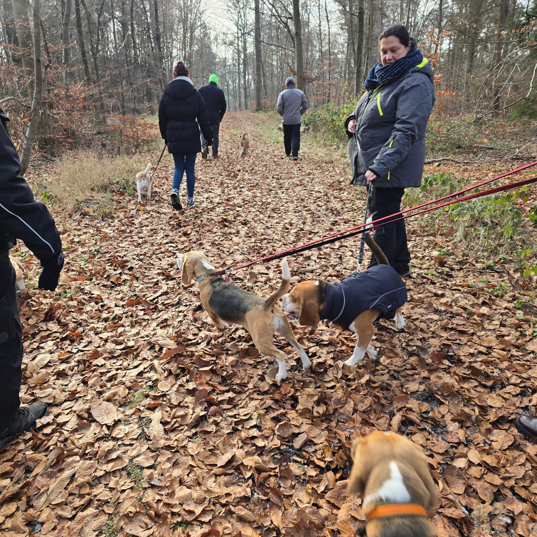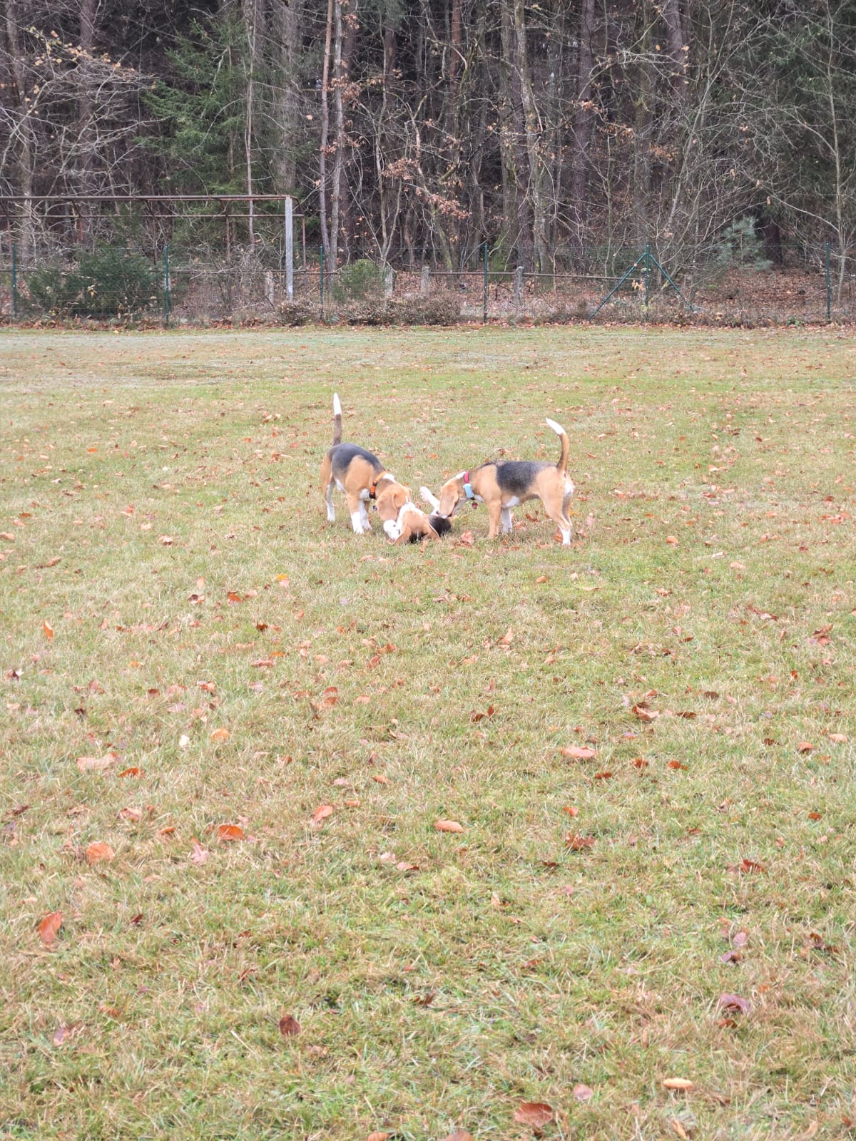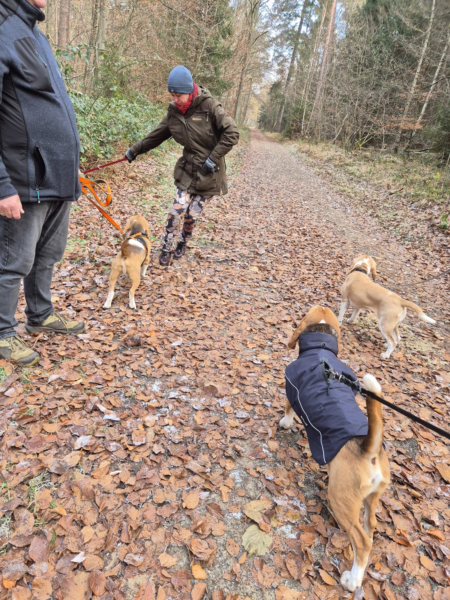 Als wir von dem Spaziergang zurück zum Hundeplatz kamen, wurden auch schon die ersten Fotos von Charlie gemacht. Er war mit seinen Menschen, langjährigen Mitgliedern der LG, auch nicht beim Spaziergang dabei, da er noch recht klein ist. Nach den ersten Fotos war aber dann das Essen fertig und die Fotos mussten warten. Da das Wetter nicht so gut vorhergesagt war, ging es nach dem Essen aber auch gleich wieder auf den Platz zum Fotoshooting. Außer den Einzelfotos wollte Ruth gerne auch Fotos von Beagles in Aktion machen. Das mit den Fotos hat dann auch alles noch gut funktioniert, aber das Wetter wurde immer schlechter und da Glatteis vorhergesagt wurde, haben wir den Kuchen zum gemütlichen Kaffee aufgeteilt und unseren Mitgliedern mitgegeben.