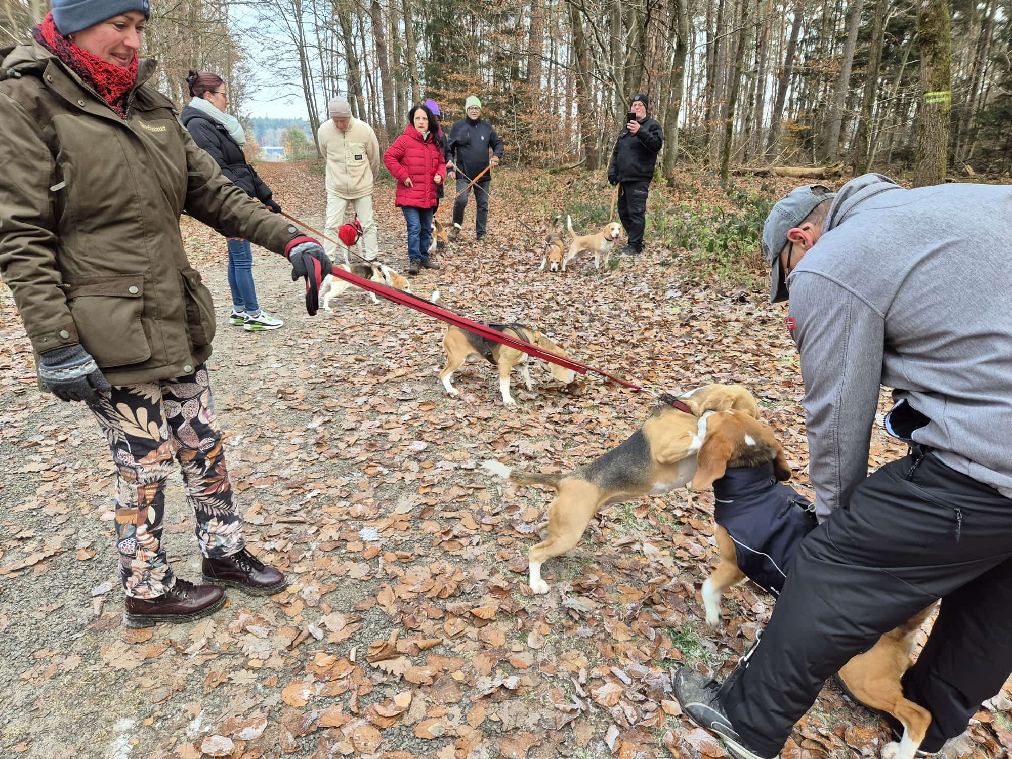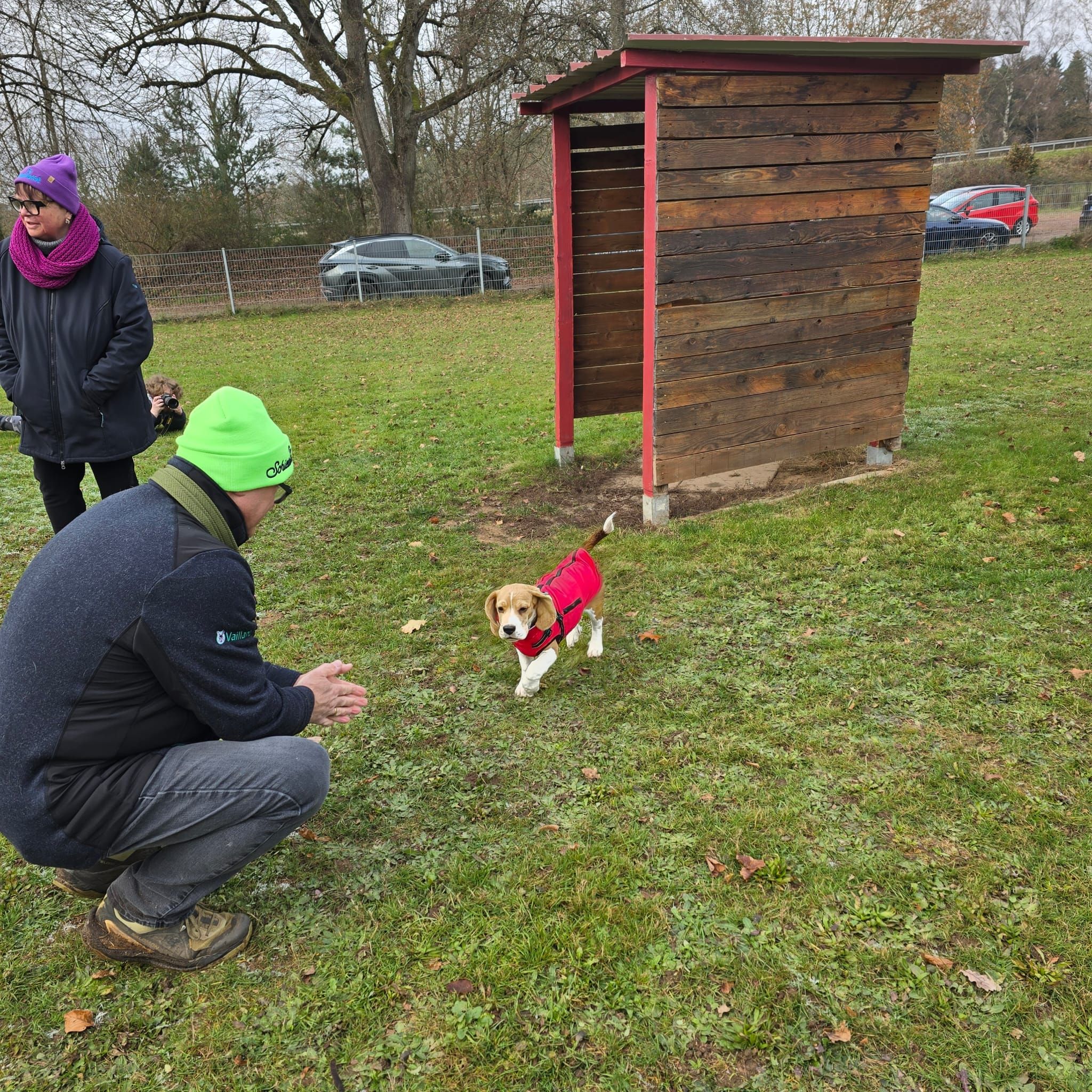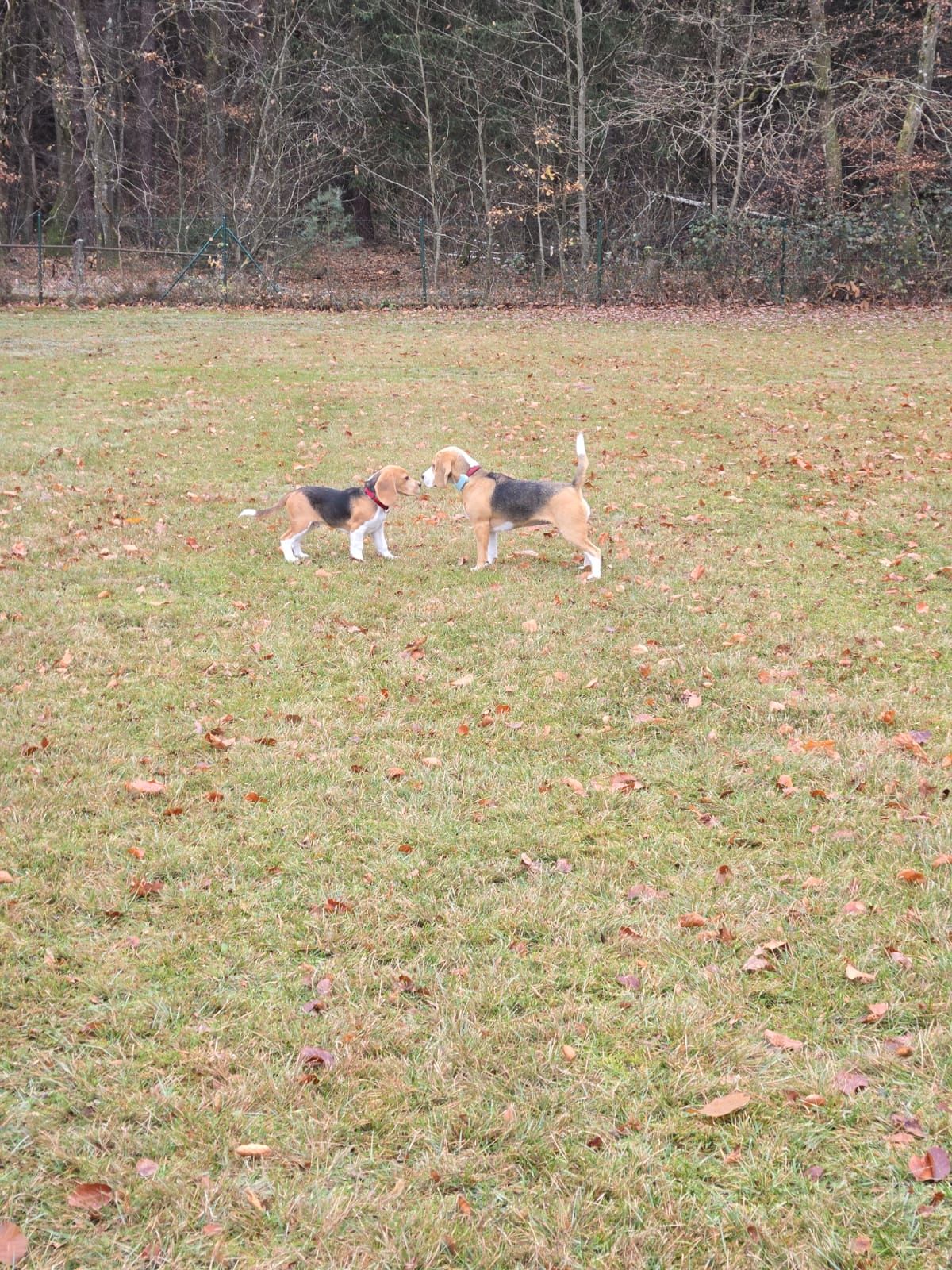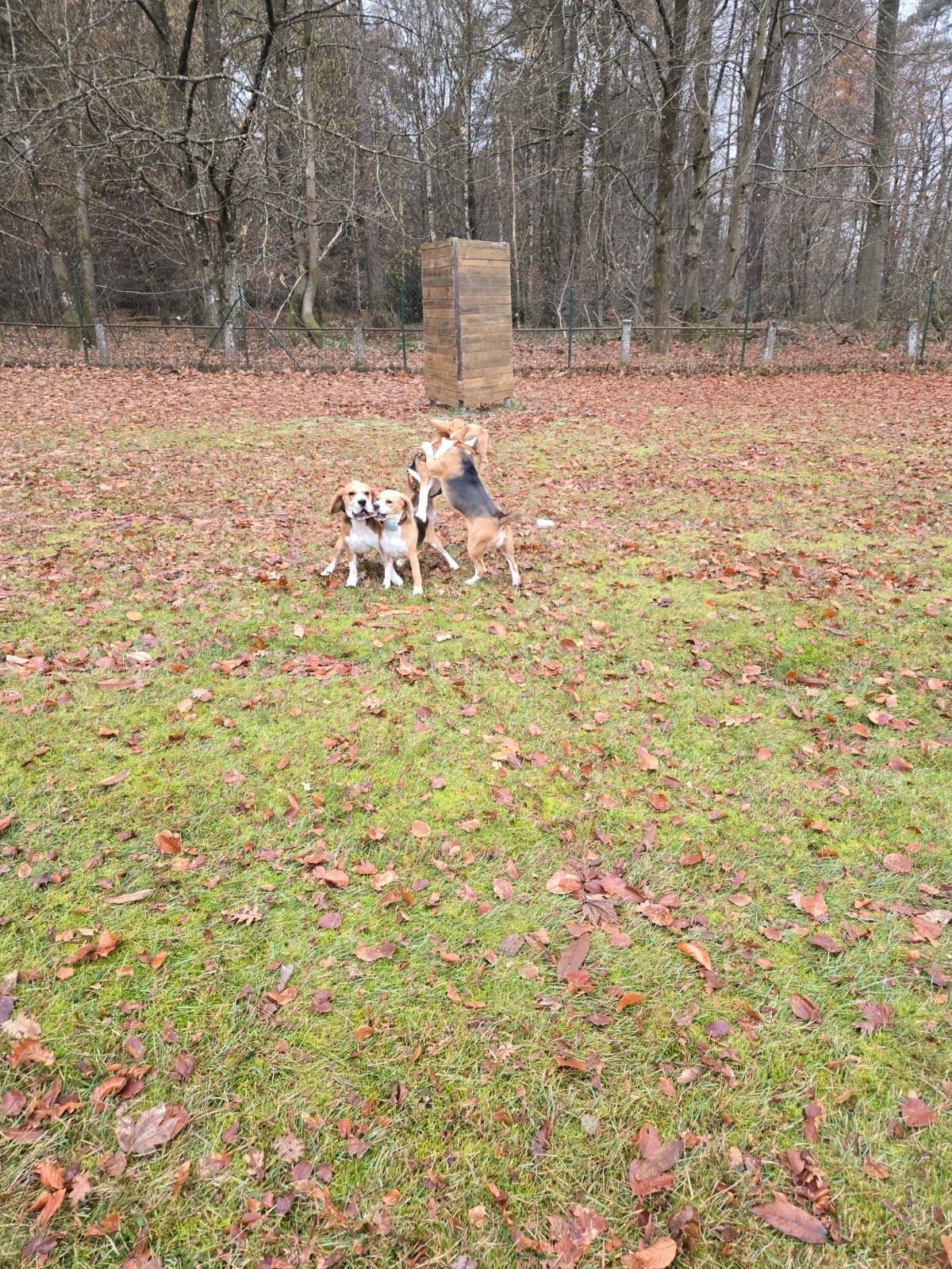 Als wir von dem Spaziergang zurück zum Hundeplatz kamen, wurden auch schon die ersten Fotos von Charlie gemacht. Er war mit seinen Menschen, langjährigen Mitgliedern der LG, auch nicht beim Spaziergang dabei, da er noch recht klein ist. Nach den ersten Fotos war aber dann das Essen fertig und die Fotos mussten warten. Da das Wetter nicht so gut vorhergesagt war, ging es nach dem Essen aber auch gleich wieder auf den Platz zum Fotoshooting. Außer den Einzelfotos wollte Ruth gerne auch Fotos von Beagles in Aktion machen. Das mit den Fotos hat dann auch alles noch gut funktioniert, aber das Wetter wurde immer schlechter und da Glatteis vorhergesagt wurde, haben wir den Kuchen zum gemütlichen Kaffee aufgeteilt und unseren Mitgliedern mitgegeben.