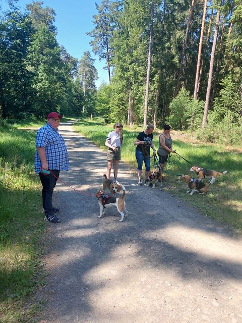 Bei sommerlichen Temperaturen trafen sich ein paar Mitglieder der Saarbeagles zum monatlichen Spaziergang. Da es an diesem Tag sehr warm war, entschieden sich die Spaziergänger für eine sehr kleine Runde durch die schattigen Wälder von Altstadt. Wieder am Hundeheim angekommen wurden zuerst alle Vierbeiner mit frischem Wasser versorgt, bevor es für die Zweibeiner Mittagessen gab. Im Anschluss durften die Beagles wieder auf dem großen Platz miteinander Spielen. Es war ein schöner warmer Tag mit den Saarbeagles.