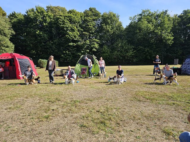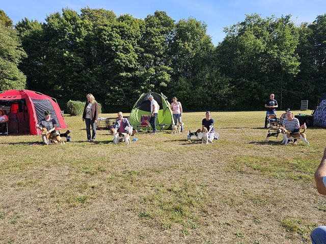 Dies war dann auch der dritte und letzte Termin im September. Angemeldet zu unserer Beagle-Diplom-Prüfung waren in diesem Jahr ursprünglich 10 Teilnehmer eine tolle Anzahl, doch leider haben sich 2 Teilnehmer während unserer Trainingszeit bereits abgemeldet. Ein Beagle war zu diesem Zeitpunkt noch im Urlaub und der zweite Beagle, der auch schon etwas älter war, hatte gesundheitliche Probleme. Ein Teilnehmer musste kurzfristig aus persönlichen Gründen die Teilnahme absagen und ein weiterer Hund wurde ein Tag vor der Prüfung krank. Also starteten nur noch 6 Mensch-Hund Teams, davon 3 im Beagle-Diplom A, 1 Team im Beagle-Diplom B, 1 Team im Beagle-Diplom C-Sport und ein Team im Beagle-Diplom C-Suche.